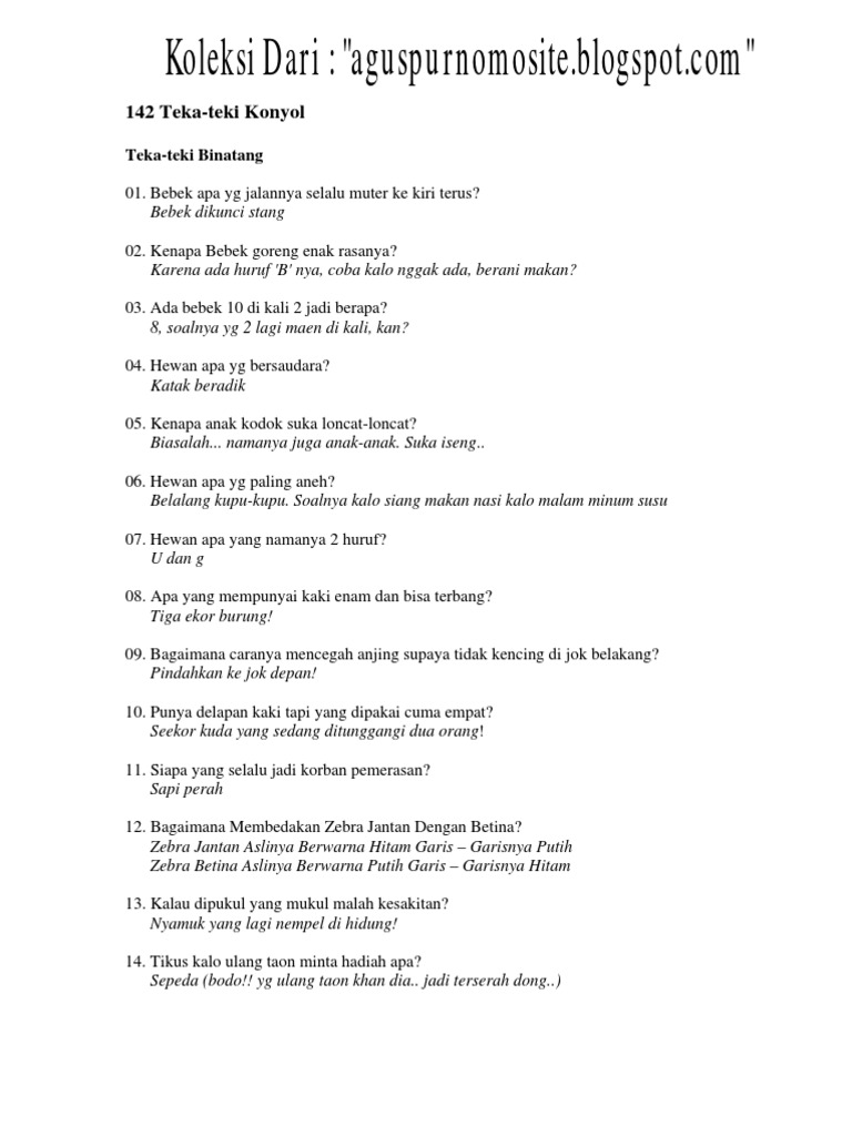 Berisi teka teki lucu yang bisa membuat logika kita terus bekerja untuk menjawabnya.